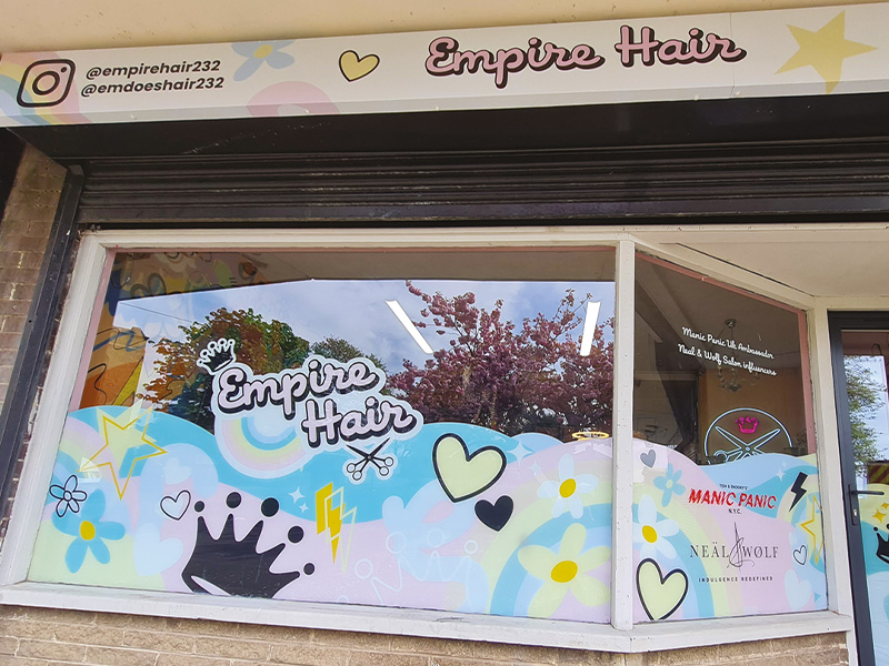 - Window graphics – promotional graphics, frosted vinyl, one-way vision films